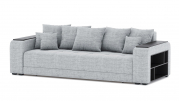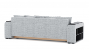Механизм трансформации - еврокнижка. Наполнение: ПБ + высокоэластичный ППУ. Полка ЛДСП только в одном подлокотнике. Ящик для белья - есть. Чехлы подушек - несъемные, наполнение - крошка ППУ.
