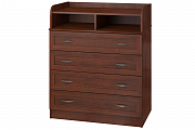 Комод "Ода 1" укомплектован четырьмя выдвигающимися ящиками большого объема, верхняя часть имеет две удобные ниши, позволяющие поместить набор различных вещей. Также комод без труда можно использовать, как подставку для телевизора или большого зеркала, что очень удобно для спальни.