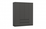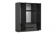 Большой, вместительный шкаф с четырьмя распашными дверцами и двумя выдвижными ящиками. Внутри шкаф оборудован тремя штангами и двумя полками для хранения одежды и вещей.