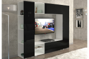 Стенка "Лестер 6" белый гладкий/черный глянец BS (БС) 1314-55, push to open (пусх то опен)